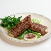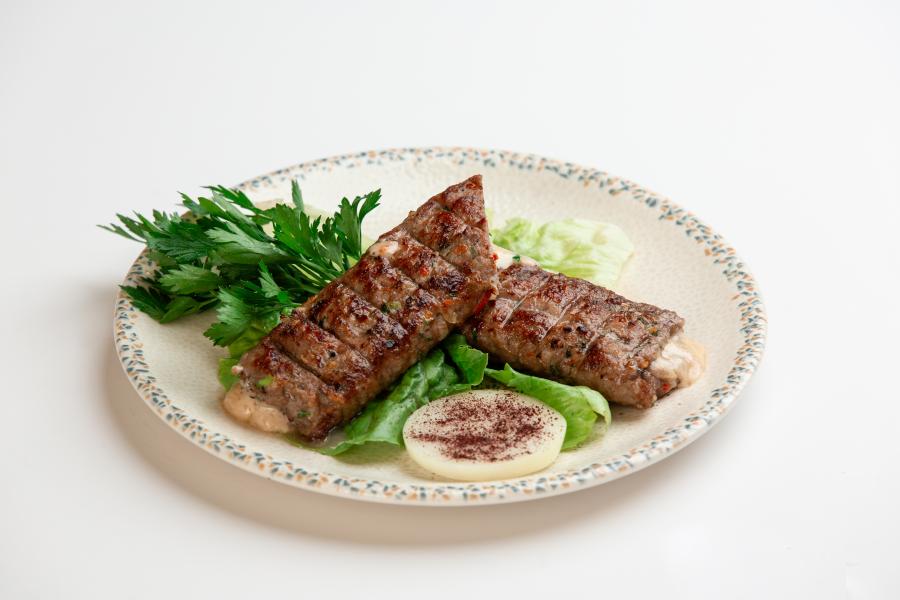 рулет из мяса телятины и баранины с овощами и сыром. Подается с салатом мангал